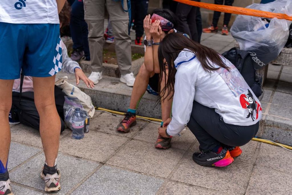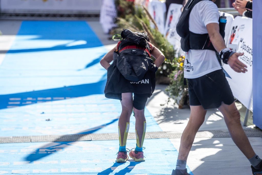 2024年スカイランニング世界選手権のゴール後。日本代表として出場させてもらったのに、思うように走ることができなかった。結果を残せなかった。自分を責めて顔を上げられませんでした。