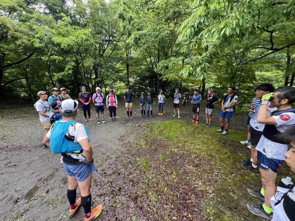 まず初めに集合して、今日の自己紹介と、今日のめあての確認。この練習会のめあては『山を楽に・安全に走る方法を知る』でした。また、トレイルランニングをするときのルールやマナーも確認しました。「あいさつをする、広がらずに走る、ほかの登山客が来たら歩くか止まる、ゴミはすべて持って帰る」などのルールやマナーは、誰もが気持ちよく山を楽しむためにとても大切なことです。